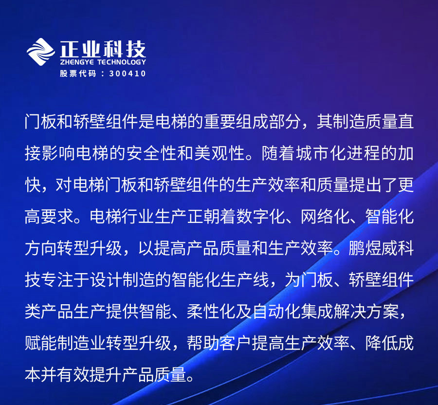 鵬煜威科技為電梯門板、轎壁類產品提供一體化智能生產線